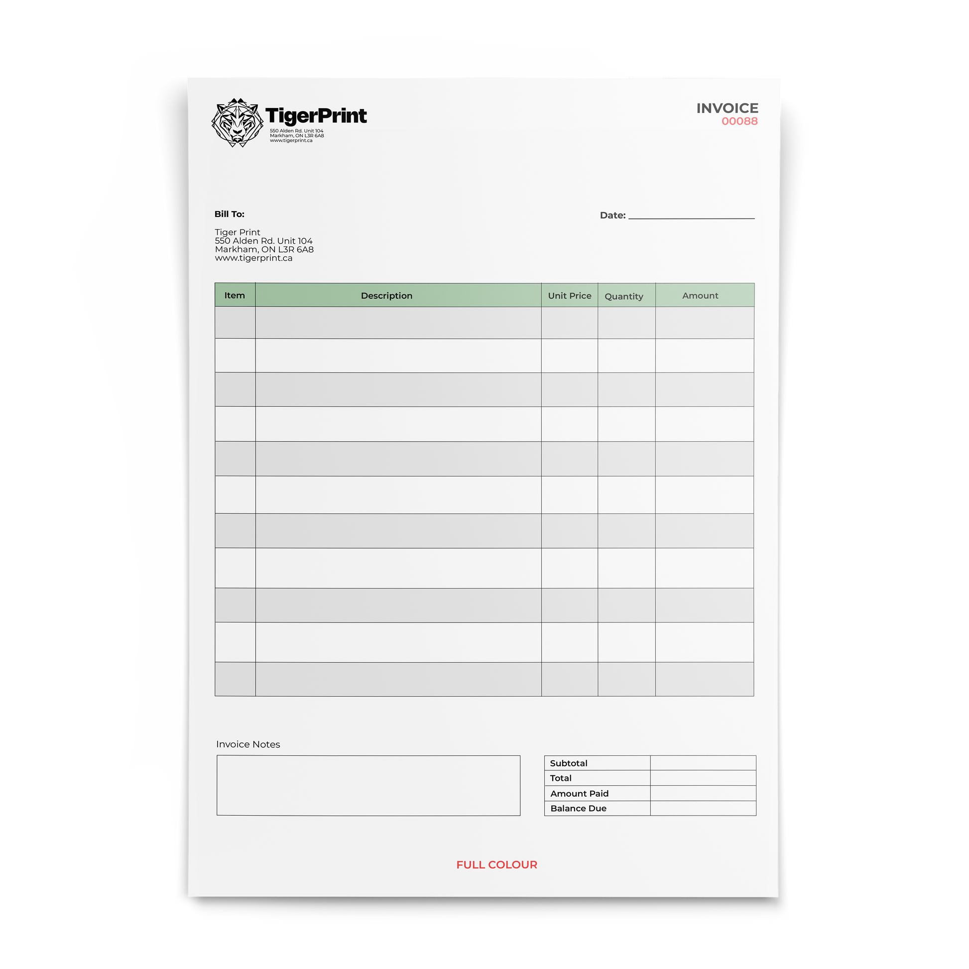 You must submit a FULL ready-to-print file, not only your company header. The entire invoice will be printed based on the file you submit. We will not add to or remove any elements of your ready-to-print file such as titles, boxes, signature spaces etc.